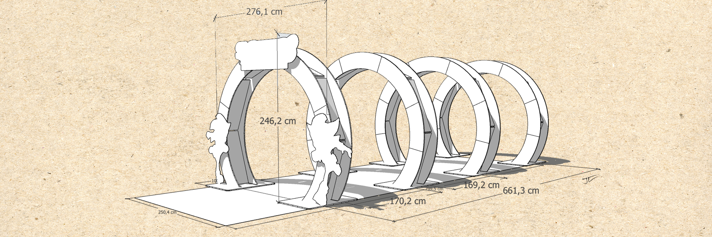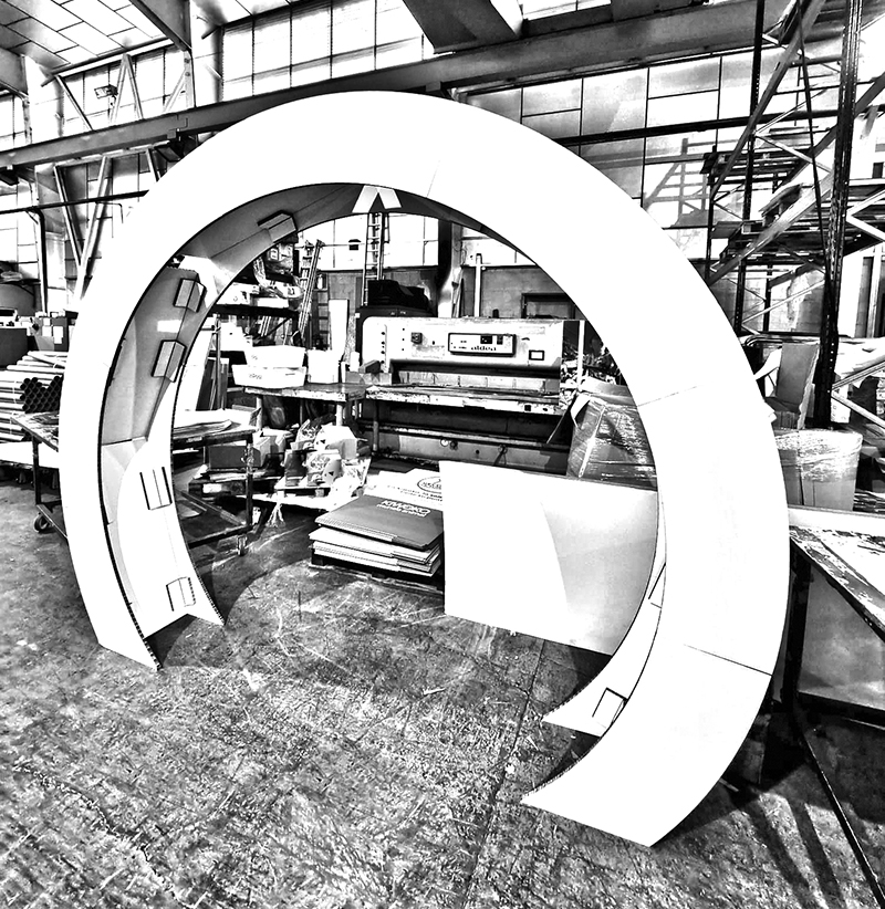 Diseño estructural y evento familiar con luz y sonido.